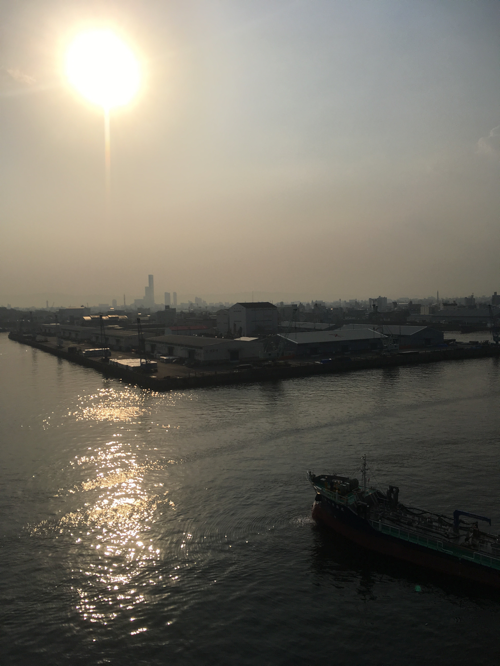 すごく見えづらいですが、向こうになみはや大橋が見えます。