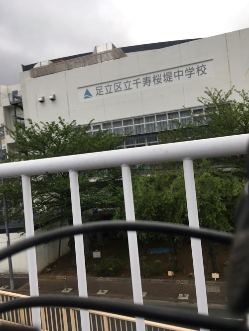 ロケ現場近くの千寿桜堤中学校。