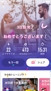 「30日でお腹の脂肪を落とす」アプリ 上級3日目。
