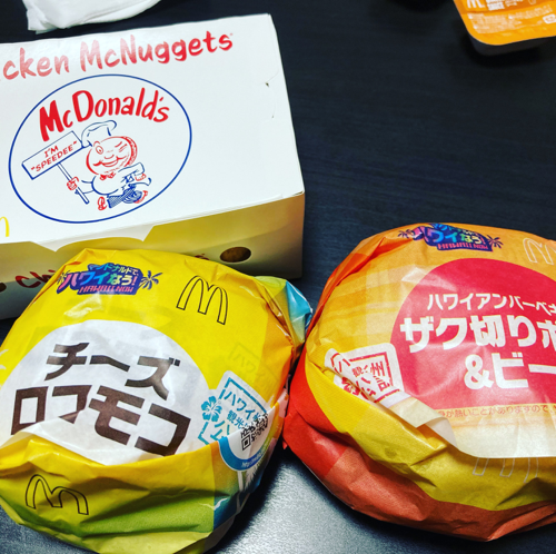 最後の〆はマクドナルドハワイアンシリーズからチーズロコモコとバーベキュー ザク切りポテト&ビーフ食べてしまいました。