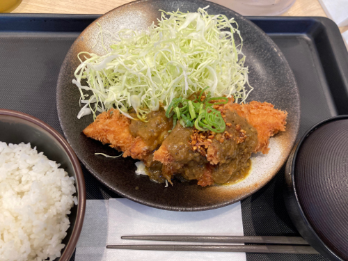 お昼は松のやで濃厚カレーソースのささみかつ定食でした。
