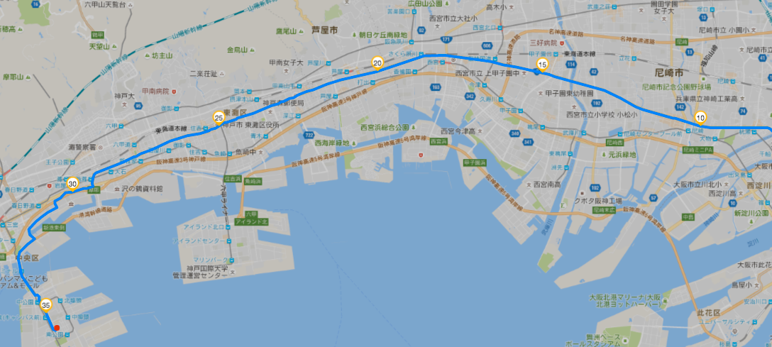 尼崎 -> 西宮 -> 甲子園 2号線から43号線 初長距離自転車です