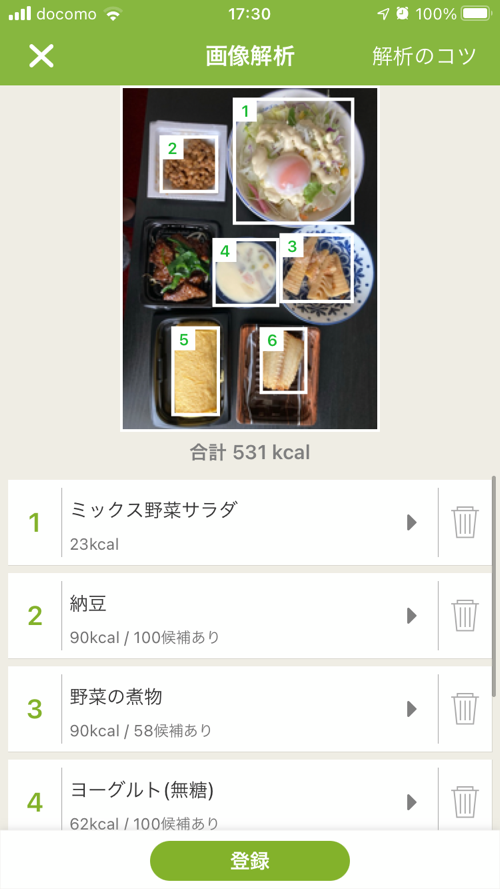 画像解析プラス手入力、あすけん調べで737kcalでした。